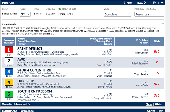Race 5 at Santa Anita on 2/9