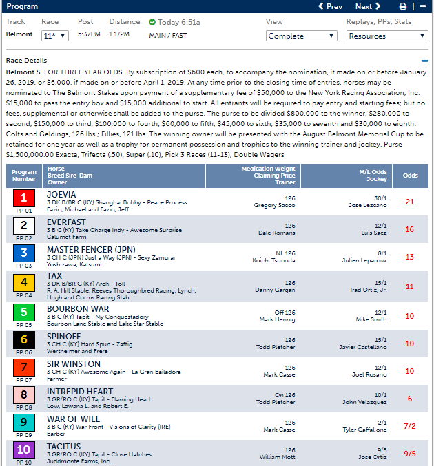 Belmont Odds