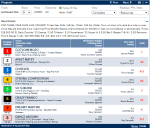 One of the most interesting races today odds-wise was in the 7th at Gulfstream, a $6,250 claiming race at 1m on the dirt for three-year olds without a win since early May. According to the program, #7 Dream Martini had the highest winning percentage at 33% versus odds of 6-1, representing value. There was also value in #2 Avast Matey at 46-1 compared to the model’s winning probability of 7.42%. With those high of odds, it had an expected return of +249%, the highest in the field, with Dream Martini next at +131%. The market saw Chiseled as the best horse with odds of 6-5. Even though the race was a low-stakes claiming race, the implied winning probability of Chiseled at 45% (versus the model probability 19.60%) signaled that the horse was a strong contender to win. Therefore, if the horseplayer was still looking to play value, Dream Martini or Avast Matey would have to be taken for place or show. Judging by Avast Matey’s SPD estimate, the horse did not appear to have much speed; however, his E1 and E2 estimates of 36% and 38% told a different story, that the horse was relatively fast through early and middle distances. The horse also had decent final speed figures five and six races back. Where Avast Matey was lacking was in LP, indicating the horse was not finishing his races. If the horse could stretch out just a little farther, he was worth taking a flier on either to place or show. As it turns out, Chiseled won the race, while Avast Matey came in 2nd and Dream Martini third. Avast Matey led for much of the race, until he was overtaken down the stretch by Chiseled. Avast Matey paid $26.40 for the place.
