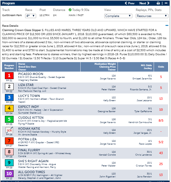 $110K Glass Slipper Stakes at Gulfstream, Sat., Dec. 7