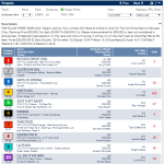 The Handicap Wizard Turf Program had a nice result in the 6th race today at Gulfstream, a $50K claiming race at 1 mi. on the turf for three-year-old fillies. The top selection was #9 La Rusia at 16-1 with a 19.55% win probability followed by #7 Fancified at 8-1 with a 16.39% win probability. In the race, #9 La Rusia led for much of the race until the final stretch, when Fancified came from off the pace to pass him in the center of the track. Even though the program had the win and place horses reversed, the $2 exacta paid $199.80.