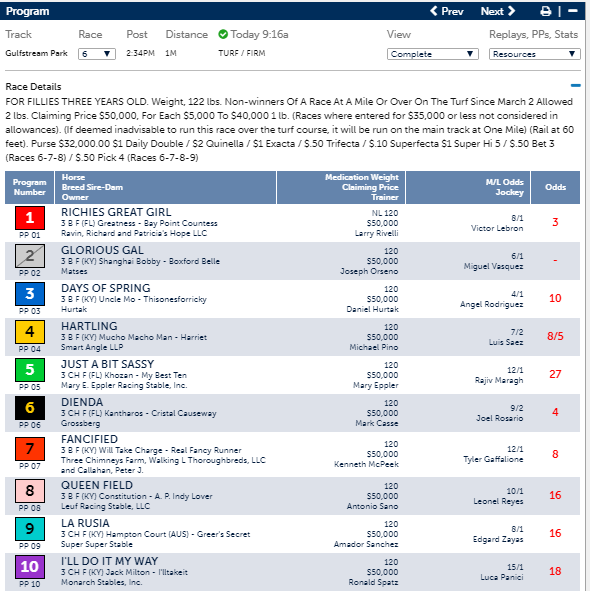 Race 6 at Gulfstream, Thurs., Apr. 2