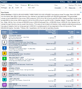 Race 9 at Will Rogers, Mon., Apr. 6
