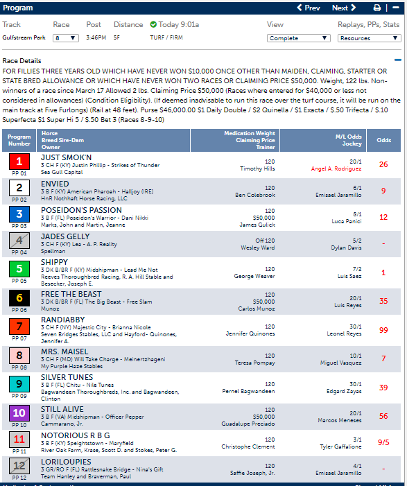Races 5 and 8 at Gulfstream, Fri., Apr. 17