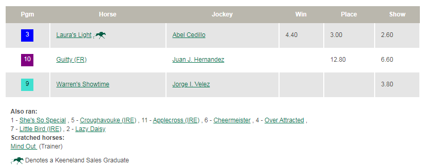 Turf results at Gulfstream and Del Mar, Sat., July 25