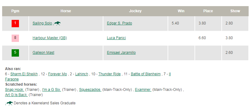 Turf results at Gulfstream and Del Mar, Sat., July 25