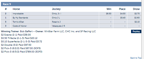 Whitney Stakes Results, Sat., August 1