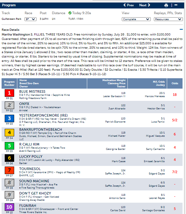 Graded Turf Races at Gulfstream, Sat., Aug 8.