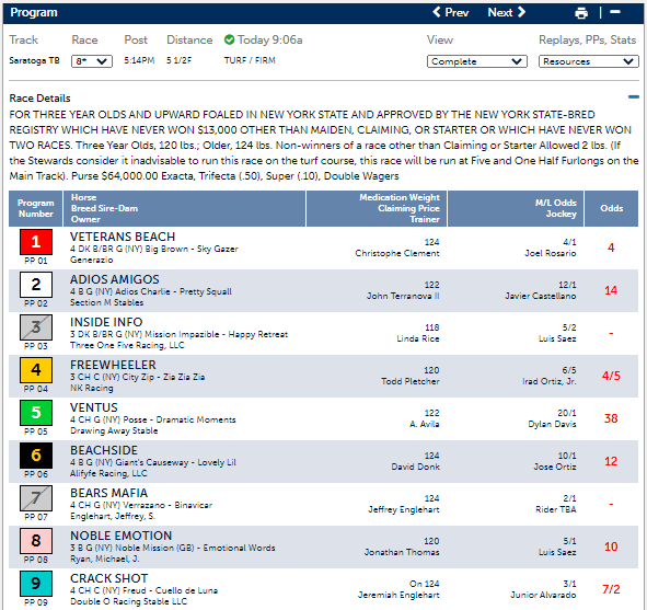 Race 8 at Saratoga, Fri., Aug. 21