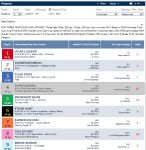 In the 9th race, the $100K Red Smith Stakes, run at 1 3/8 mi. on the turf for three-year-olds and up, the program’s 1st selection first selection #8 Ziyad (GB) finished third, while its second selection, #10 Red King, finished second. In a surprising upset, #5 North Dakota at 8-1 at surged late down the stretch to take the win. North Dakota projected low as far as SPD, but instead relied heavily upon his LP estimate 20.3%, which was still second to Sadler’s Joy’s at 36.3%. A betting favorite at 8-5,#4 Sadler’s Joy, who was the program’s 3rd selection, came in 4th. These are Turf Program results.