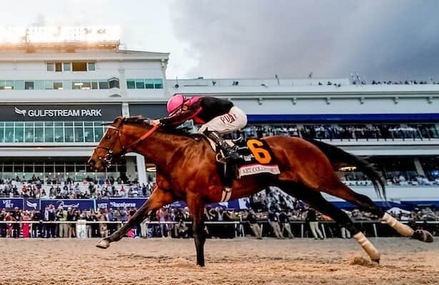 For those that watched the Pegasus Invitational yesterday, you saw a thriller with Art Collector pulling the upset in his last career start as a six-year old. Although the horse was not among the top four selections in the program, there was evidence that Art Collector had value at his price of 15-1, dropping from 19-1 shortly before the post. The value can be seen in his Win Percentage (WP) of 12.7%, only behind Cyberknife’s at 22.4%. 12.7% would be Art Collector’s probability of winning based upon the historical money finishes of the horses alone. On that basis, Art Collector’s fair value was about 8-1, but given his recent performance with Brisnet final speed figures only in the 90s, the market had discounted him because of his weak form. Yet, this is exactly when one should be playing these kind of horses, who tend to bounce back, especially if they can get with the right trainer, like Art Collector did with Mott. Art Collector showed back class in recording the highest final speed figures of 110 and 107 six and seven races back. This handicapper took Art Collector to win and it paid off. Looking at the Win Percentage alone is one of the strategies discussed in the book on the PHW method, which can be found on the site. To see the image in full-resolution, click on the encircled “i” in the bottom right hand corner, scroll down and click on the link for the full-size image.