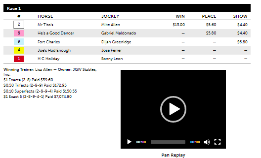 The program had a good result to start off in the 1st race at Tampa today, a $5K claiming race at 1 mi. 40y on the dirt for four-year-olds and up, with its first selection of #2 Mr. Tito’s at 5-1. The horse had a total win probability of 26.14%, translating into odds of 5-2. Mr. Tito’s projected 1st in final speed with a win estimate of 39.0% while also having the highest win percentage in the field at 18.2%. In the race, Mr. Tito’s stalked the pace from mid pack until the half mile mark before making a move four wide around the far turn. The horse took the lead down the stretch and held on at the wire to beat #8 He’s a Good Dancer in a photo. Mr. Tito’s paid $13 for the win. The program also had the exacta order among its first three selections.