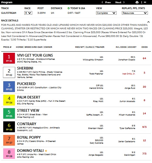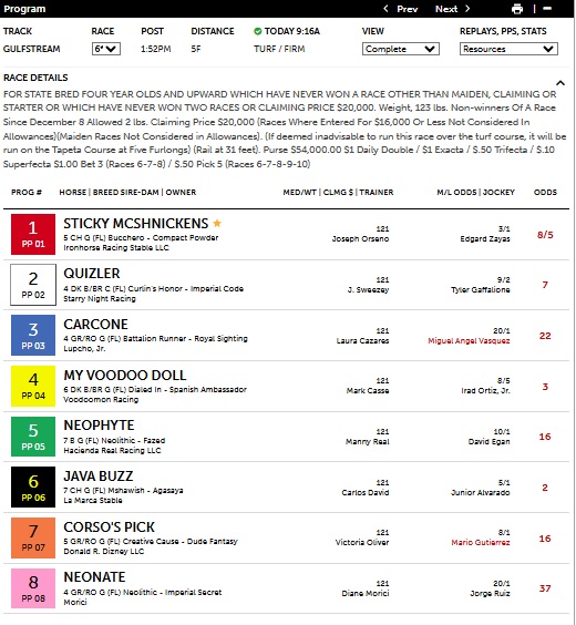In the 10th race at Gulfstream today, the $175K Mucho Macho Man Stakes at 1 mi. on the dirt for three-year-olds, the AI-enabled and Gulfstream-customized program had the exacta order correct correct with its Primary, Secondary and Tertiary selections of #1 Commandment at 1/2 and #5 Roger That Dana at 24-1. Roger That Dana was a huge overlays compared to its theoretical odds of 4-1. The $1 ex. paid $14.40.